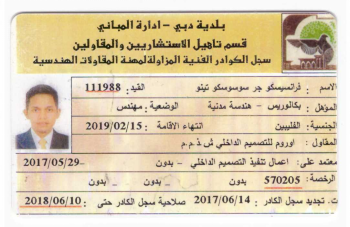 迪拜市政注册工程师